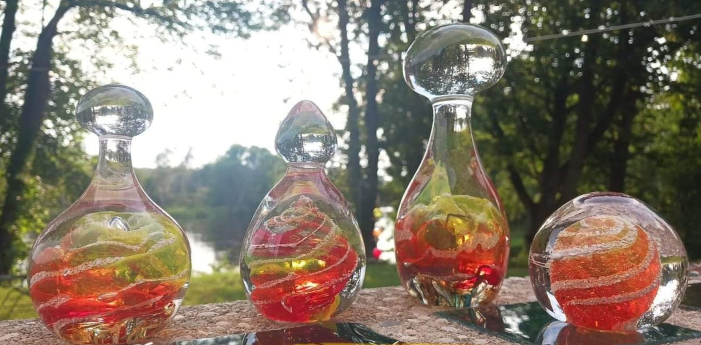 Serenade Glass Studio offers a beautiful way to display the ashes of late loved ones and pets in the form of incredibly personal glass memorial pieces. With a small sample of cremation ash, we can create gorgeous paperweights, sculptures, pendants, and more. The ash is swirled with colors selected by you to create a memorial that is truly reminiscent of those passed.
